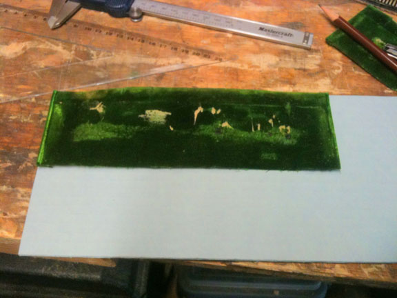 A large centre piece will run from the front edge, across a 90° angle to the underside of the lid, and across another 90° angle to the back edge. Two separate pieces, with congruent patterning, will cover the sides. Each will have narrow flaps, which will be overlapped by the larger piece, so that there are no unsightly gaps showing the wood substrate.